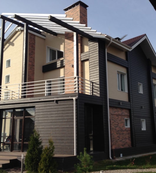 Искусственный камень — один из наиболее популярных материалов для отделки фасадов. Он отличается множеством расцветок, что позволяет использовать его для оформления зданий в различных стилях. Благодаря искусной имитации натурального камня, дом будет выглядеть презентабельно и роскошно. Искусственный камень не боится воздействия огня и имеет высокую прочность, однако не любит высокую влажность. Сайдинг также пользуется популярностью в качестве материала для отделки фасадов. Он имеет более современный дизайн, чем искусственный камень, и может использоваться для создания разных стилей оформления. Поверхность может иметь различные текстуры, благодаря чему создается имитация покрытия из натуральных материалов для отделки фасада: дерева, камня, кирпича. Использование сайдинга требует дополнительного применения теплоизоляционных панелей — в отличие от искусственного камня, он плохо удерживает тепло.